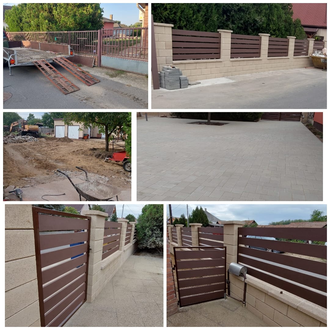 Térkövezés, kerítés, garázs